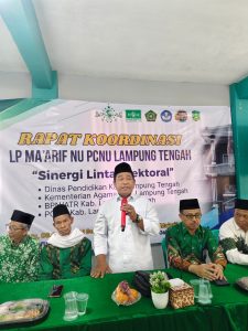 Ketua PCNU Lampung Tengah KH. Ngasifudin, M.Pd. Menyampaikan bahwa beliau selaku ketua PCNU menugaskan dan mengamanahkan sepenuhnya terkait urusan pendidikan Ma’arif Lampung Tengah kepada Pengurus LP Ma’arif saat ini. Beliau menjelaskan didalamnya LP Ma’arif mengurusi sekolah-sekolah yang ada di jalur kementerian agama (Madrasah-Madrasah) dan yang ada di Dinas pendidikan (sekolah-sekolah).